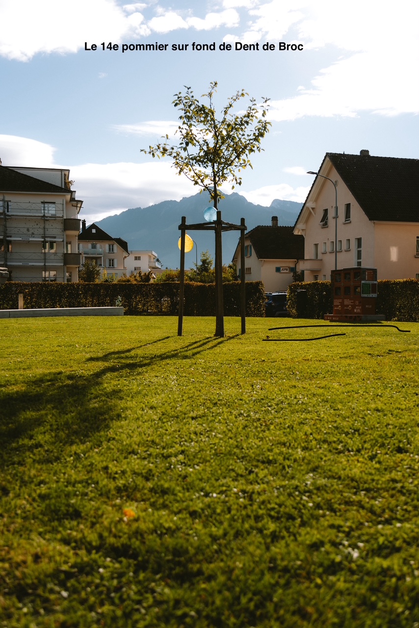 Le 14e pommier, sur fond de Dent de Broc, rappelle les 14 sommets de 8000m d’Erhard